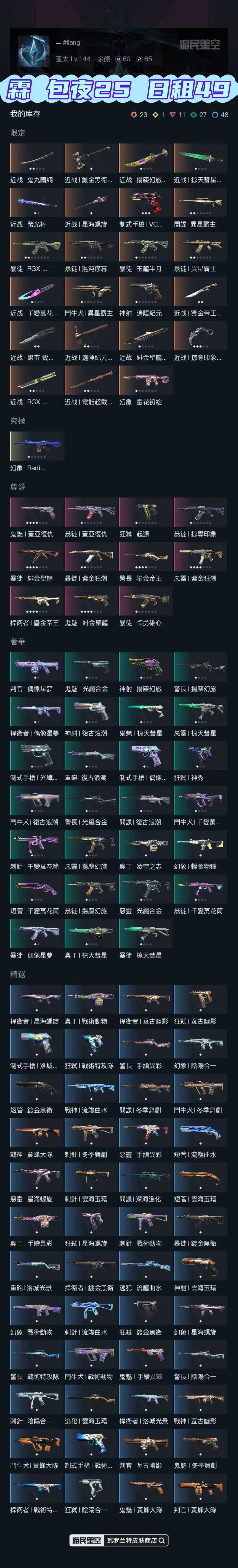 注意事项: ✨加速器没问题的情况下登录三次登录不上时请关闭游戏客户端断开加速器重新打开重新登陆,密码不会错,尝试后还登录不上请不要继续登录 ✨van152是封禁机器码,届时请直接撤单不要继续登录:VAL其他多数为加速器不稳定网速不稳定请勿重复登陆密码不会错的 ✨游戏过程中请不要恶意挂机或者不文明发言,恶意挂机、顶号等行为将被拉黑无法再次下单 .喜欢本账号请点 ☆收藏☆ 方便下次租用,谢谢光临惠顾 【此号已在吉林省长春市新春街派出所做了虚拟财产登记并备案】 【根据《刑法》第二百七十五条 故意毁坏公私财物,数额较大或者有其他严重情节的,处三年以下有期徒刑、拘役或者罚金:数额巨大或者有其他特别严重情节的,处三年以上七年以下有期徒刑】 【开挂必与平台追究到底文明游戏,禁止挂机顶号希望大家玩的开心,生活愉快】