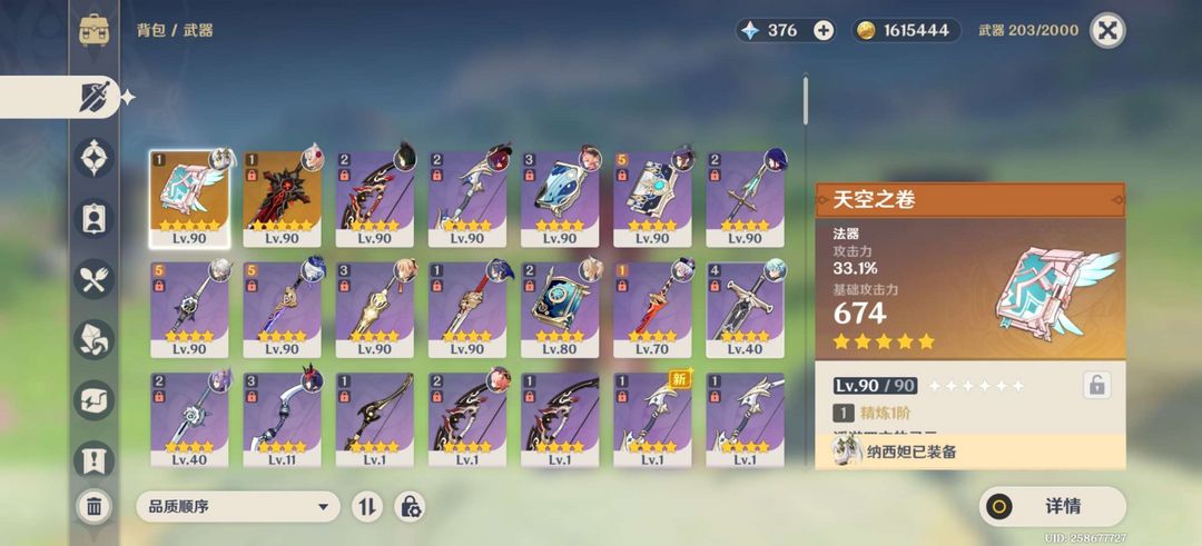- 五星武器:天空之卷、护摩之杖、狼的末路、天空之刃等(多把毕业武器)