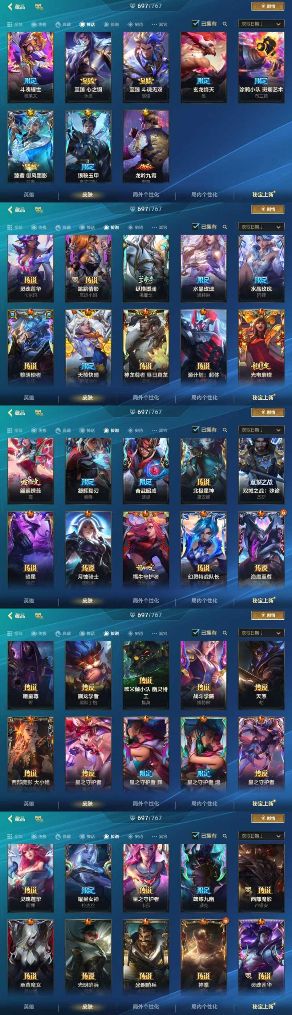697皮肤✨1终极4典藏38神话121传说✨寻道世尊✨征服裁决✨虹影孤拳✨此志凌云暮星追影✨锐利墨痕