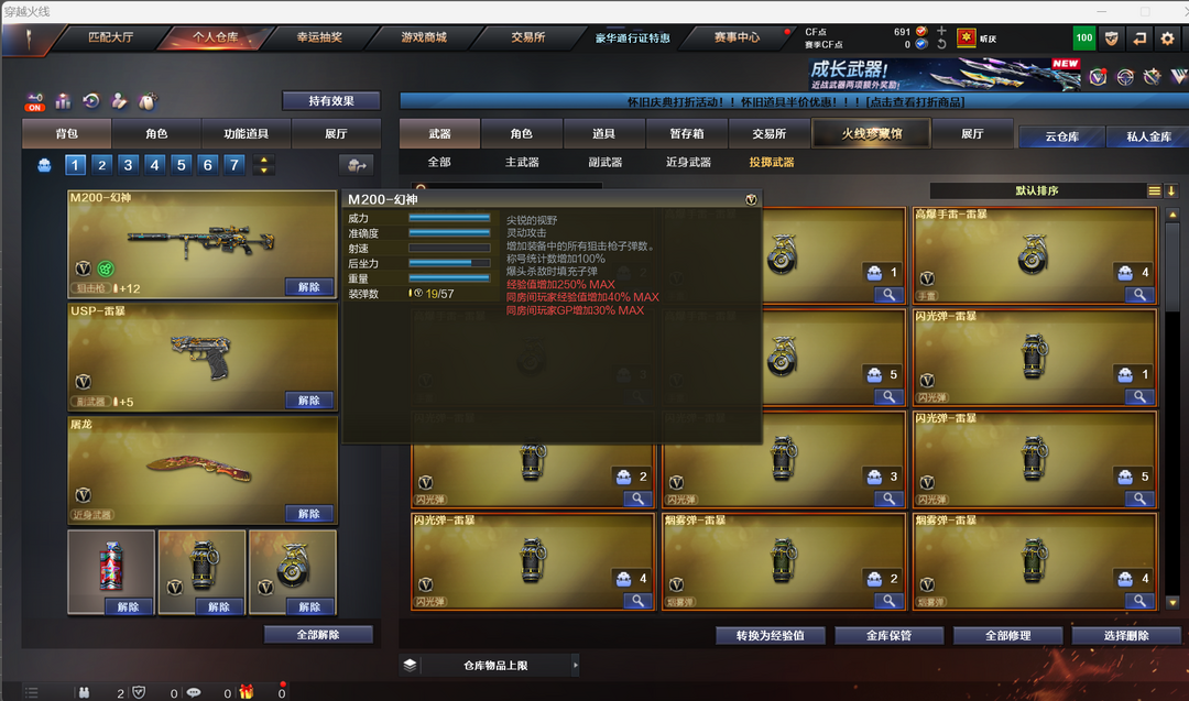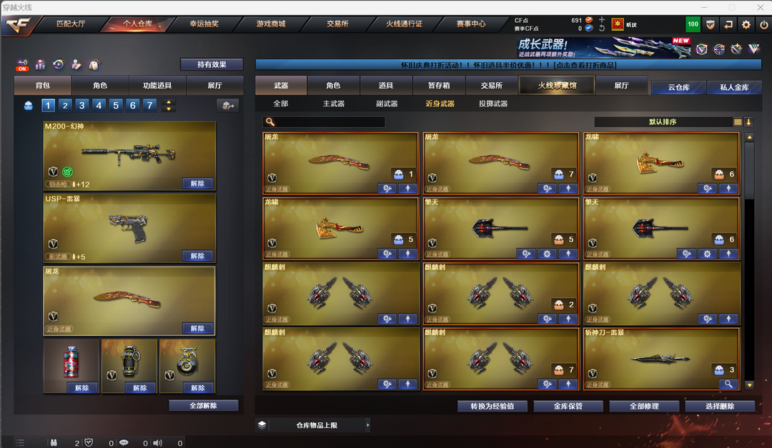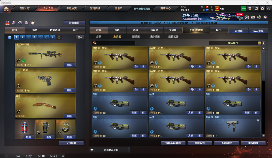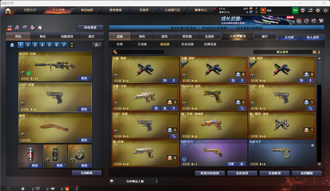 低段虐菜号,幻神,裁决,USP雷暴2个,雷暴雷5套,六烈龙,毁灭音效卡,雷神音效卡,火麒麟音效卡