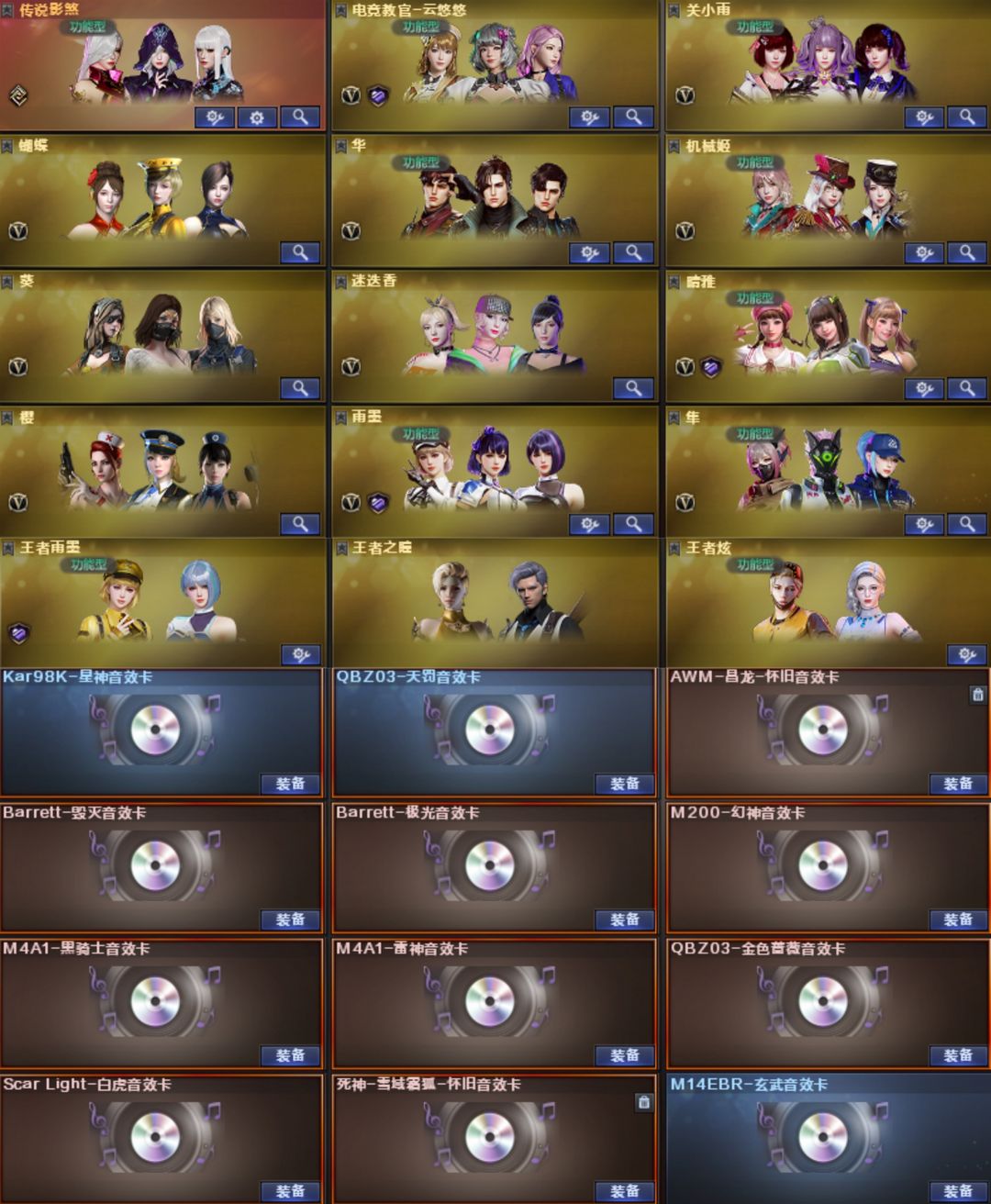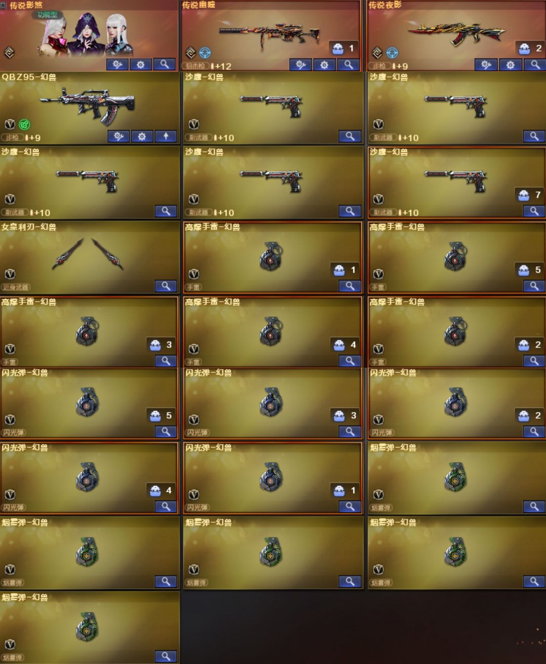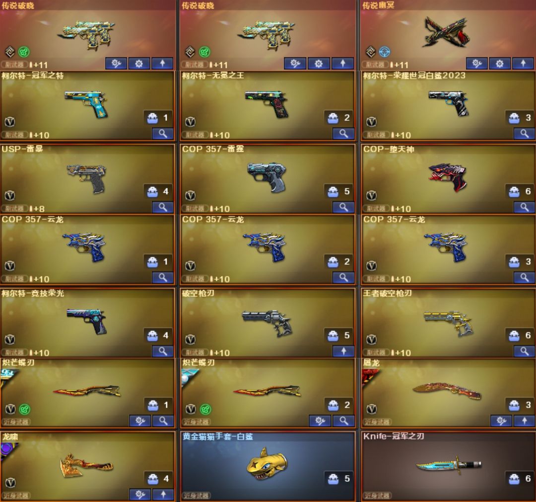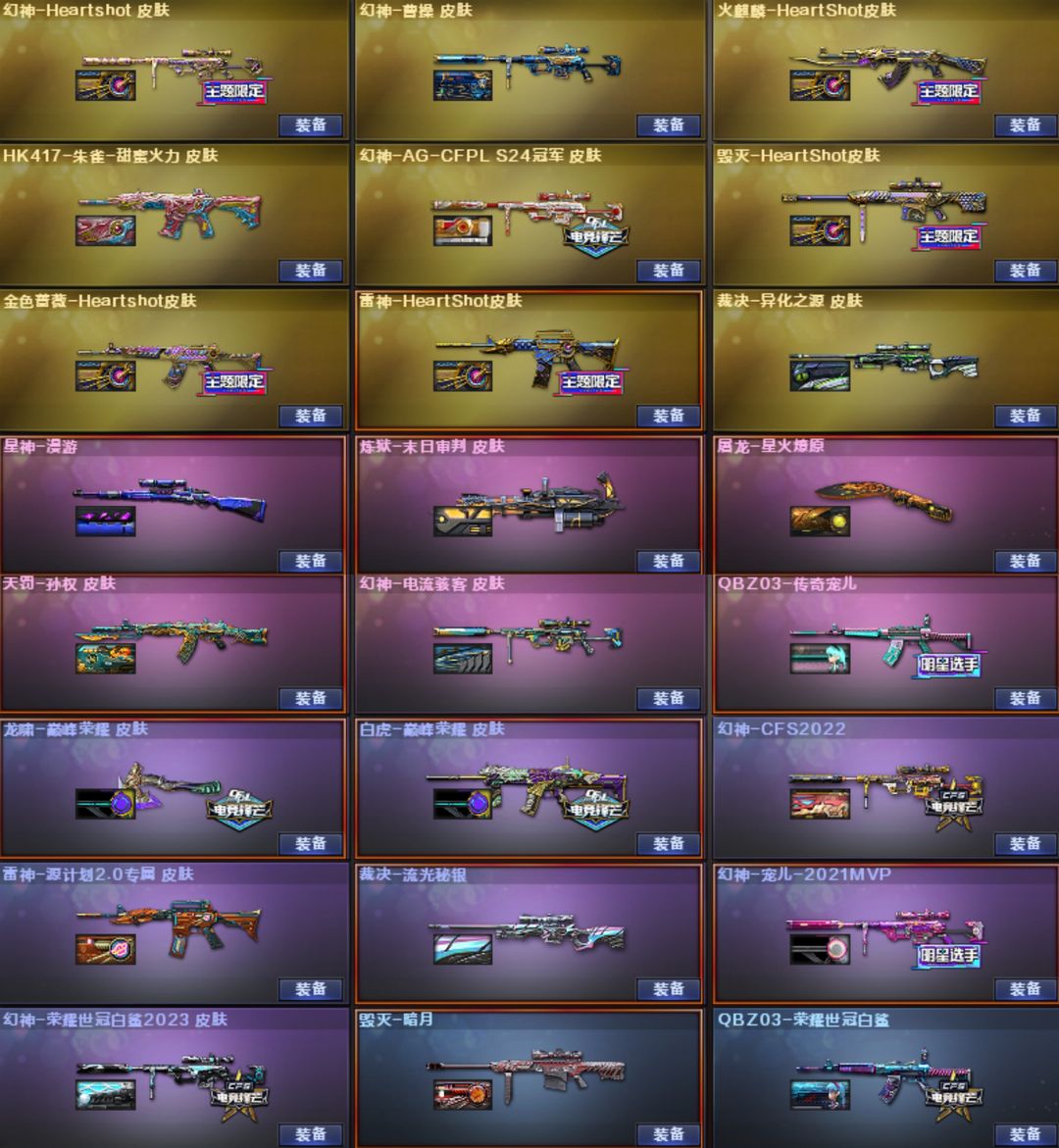 幻兽5套【传说影煞-幽瞳-夜影-破晓*2-幽冥】【幻神-AGS24-白鲨2023-Heartshot-宠儿-CFS2022-曹操-电流骇客-幻神音效卡】【星神-漫游-星神音效卡】【裁决-流光秘银-异化之源】【白虎-巅 峰荣耀-白虎音效卡】【QBZ03-传奇宠儿-Heartshot-白鲨-金色蔷薇音效卡】【G36C-幻影】【QBZ191-银翼游侠】【柯尔特-白鲨】【USP-雷暴】【柯尔特-冠军之特】【柯尔特-无冕之王】【柯尔 特-竞技荣光】【破空枪刃】【COP-堕天神】【COP云龙*3】【COP-雷霆】【王者破空枪刃】【炽芒蝶刃-白鲨-冠军炽芒】【Knife-冠军之刃】【黄金猫猫手套-白鲨】【茸茸小松狮】【泡泡象COP3 57】【云悠悠-关小雨-蝴蝶-华-机械姬-晴雅-王者雨墨-雨墨-隼】【雷神-荣耀之魄-雷神音效卡】【毁灭-SV-毁灭音效卡】