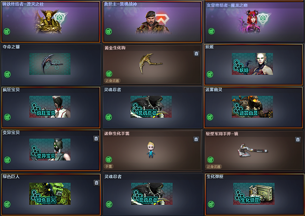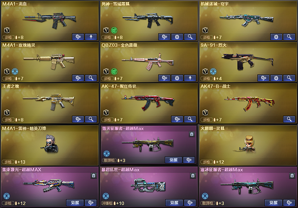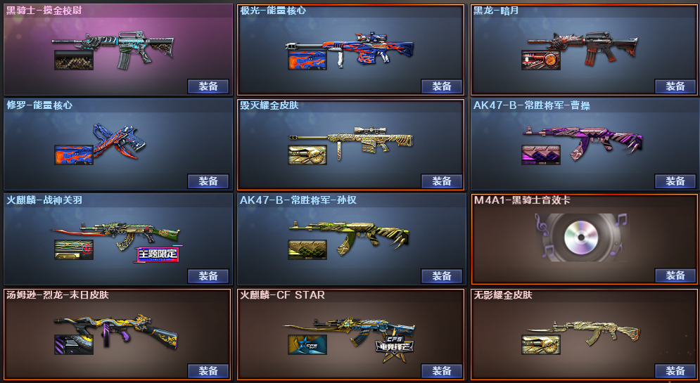 100V:幻神6盘6烈炼狱蝴蝶6黑骑士★生化爆破全装★USP雷暴★4把超越MAX★关羽火麒麟