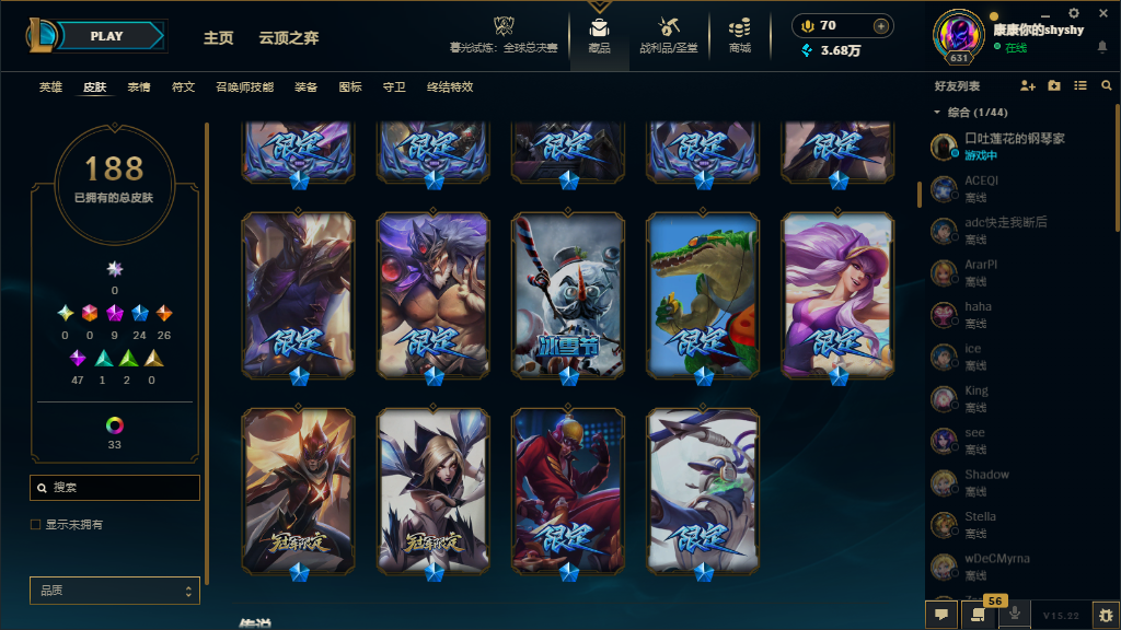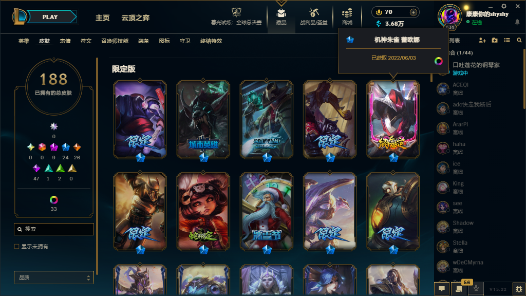【黑色玫瑰】段位没定位黄金左右⚡200皮肤⚡签名版至臻DRX亚托克斯⚡机神朱雀蕾欧娜⚡FPX薇恩