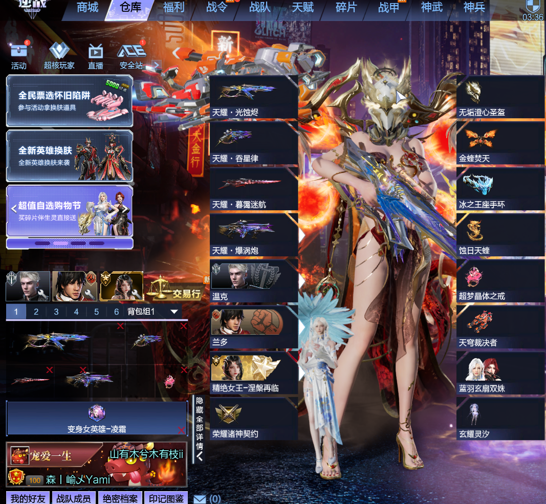 天枢头盔丨新僚机丨掘金丶精绝女王传奇觉醒丶女王幻化丨龙王龙太子换肤丨最新满配山海套丨满配幻羽幻海套丨六核神皇天帝丨全史诗套元素套丨元丶金翅丶战甲凌空白沙飞羽丶红衣丶大元素使丶eva角色丶多boss角色丶奶爸奶妈等多角色丨17戒13翅丨冰凤火甲头丶量子丶浩海头盔丶头号玩家头盔丶虚空头丶龙头丶纳菲力姆之甲等头盔丨虎王套丨狼王套丨鹰王套丨棘龙套丨兔年套丨哮天犬套等多种pvp套装武器丨天王丶朱雀丶玄武丶青龙丶白虎丶冥王丶海王丶炽鬼丶刑天丶混沌丶离子等多种pvp主流武器丨都市双子丶灵龙丶玛卡丶2233丶武士之魂等半生灵丨神武:甘蓝套丶奥特曼五件套丶冰王套丶十周年套等活动赛季套丨怪兽僚机丨英雄陷阱:迪迦丶强盾丶铁卫丶狂怒丶领主丶大魔导师丨多个变身英雄技能(泽塔之前都有)