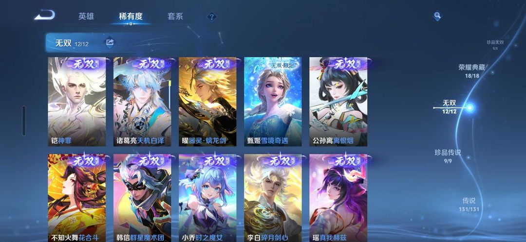 十周年全皮 万灵伏威 凯神罪♈22典藏 商城新皮清空⚡♐满无双满传说满限定满珍品