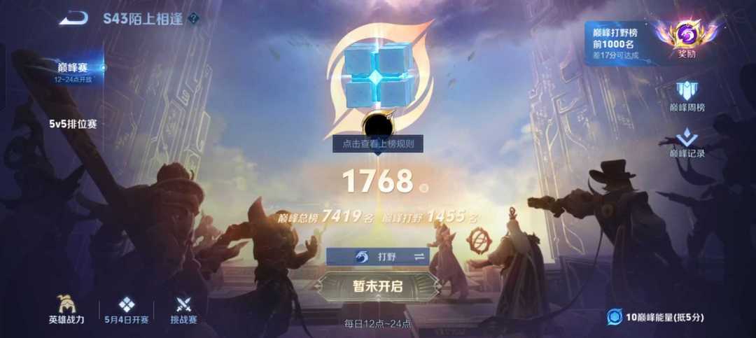 不能打巅峰赛⚡巅峰总榜万强闪电框小魔方⚡66段打野在榜省级马超李白市镜澜禁巅峰