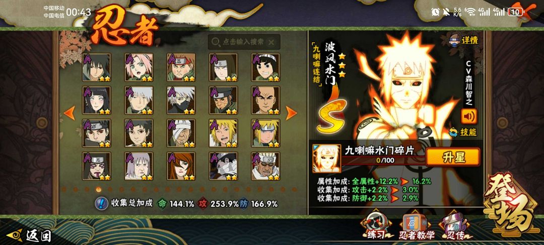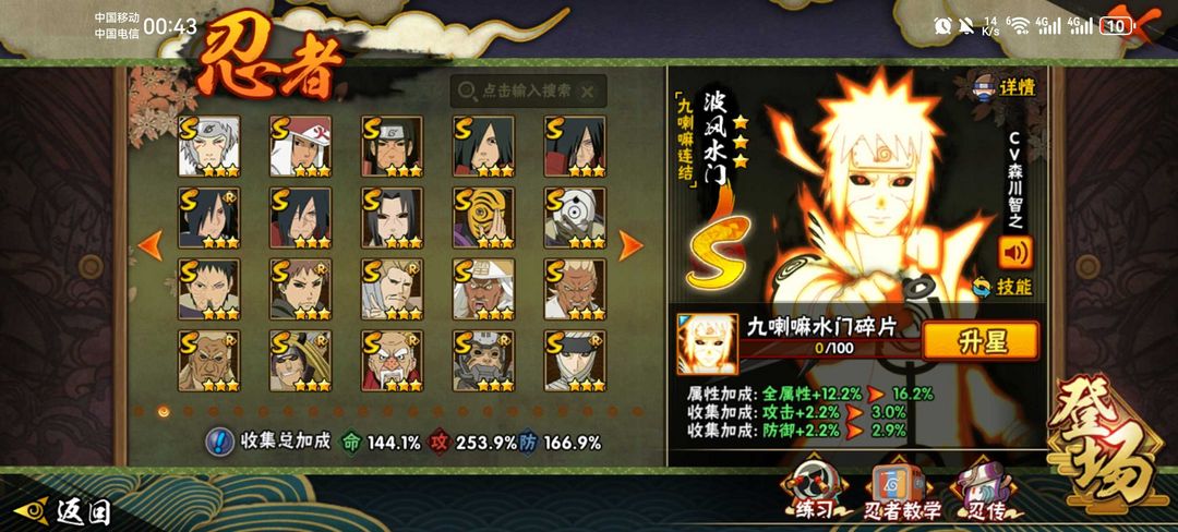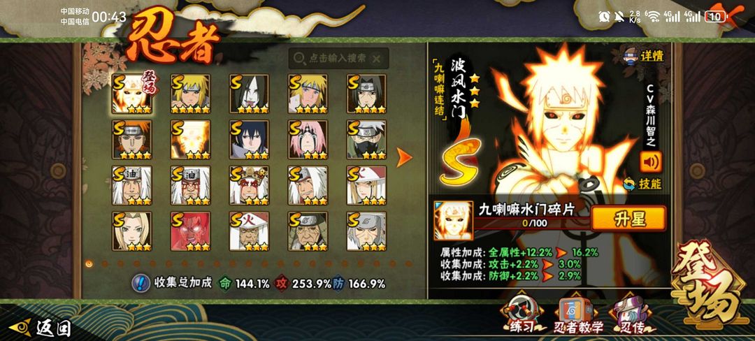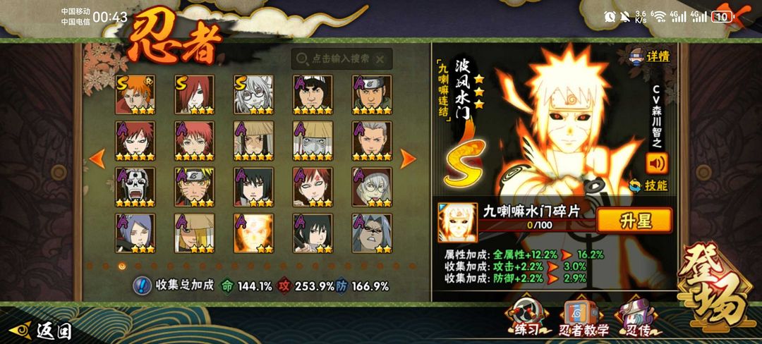 45s全点券忍者♑九喇嘛水门已秒♑永恒佐助♑天道超♑鸡翅♑新春止水♑忍战艾♑死门凯♑暴怒带土