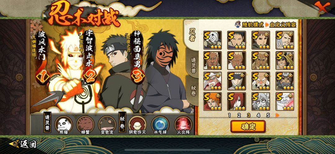 34S须佐卡卡西★忍战艾★永恒佐助★忍战樱★九尾鸣人★死门凯★忍战带土★秽土柱间★秽土鼬★仙人兜★秽土斑★熊猫二尾螃蟹万蛇守鹤★惊门凯★百机蝎★泳装照美冥★泳装小南★三船绝★新春鼬★新春水门★1450战力3800魔抗