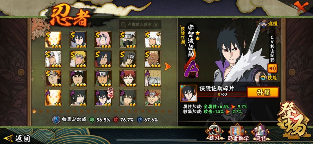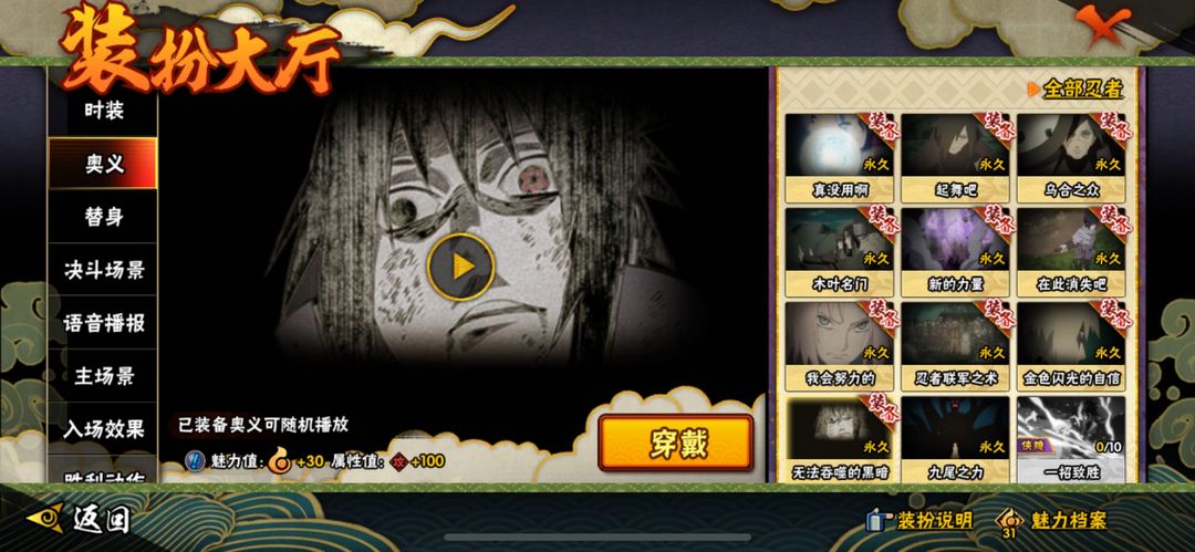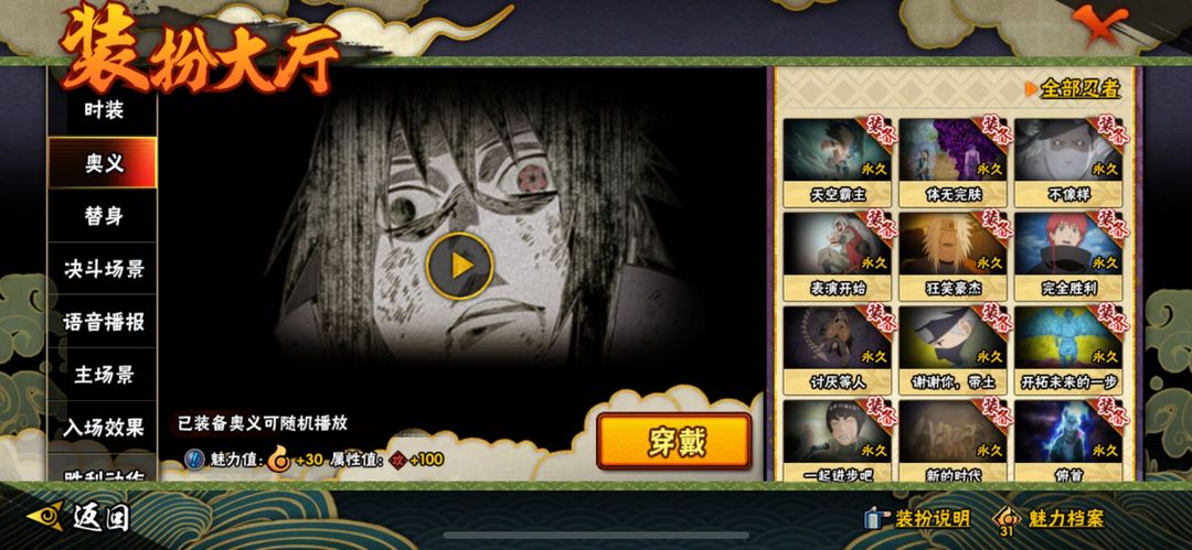 侠隐佐助/漂泊带土/解斑/秽土再不斩/传说自来也/神农/忍战樱/须佐卡卡西/忍战雷/永佐/须佐佐助