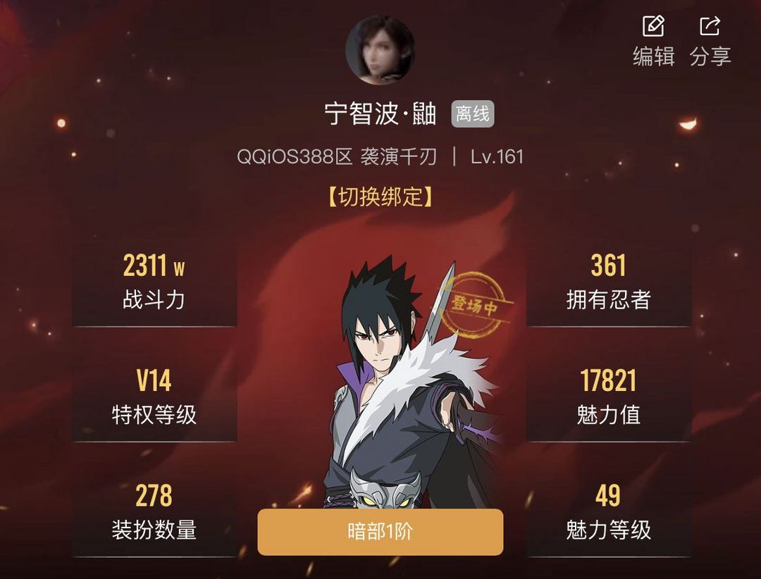 侠隐佐助2300w战力361忍者熊猫螃蟹万蛇鵺二尾