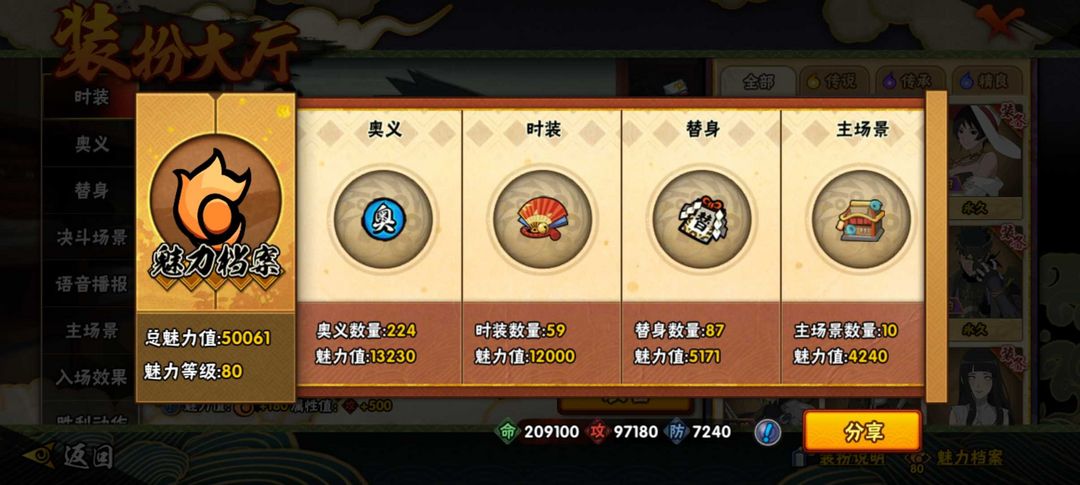 [樱花]全忍者满配全服魅力榜80级侠影佐助全套五影会谈斑九喇嘛水门全套