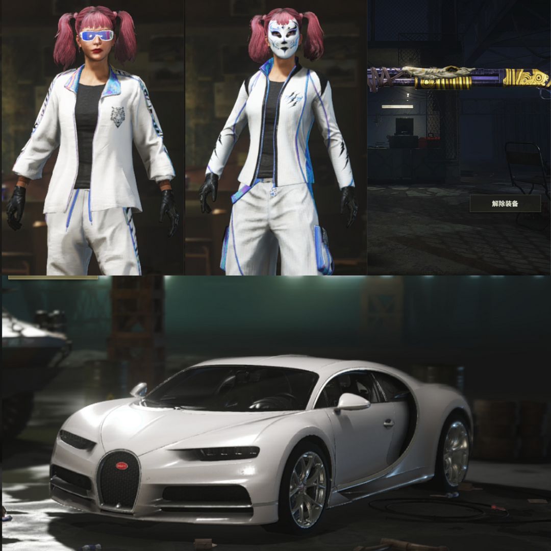 可排位-2套白运动星魂布加迪超级跑车①异色烈日S1897绷带AKM完美ACE镀金98K