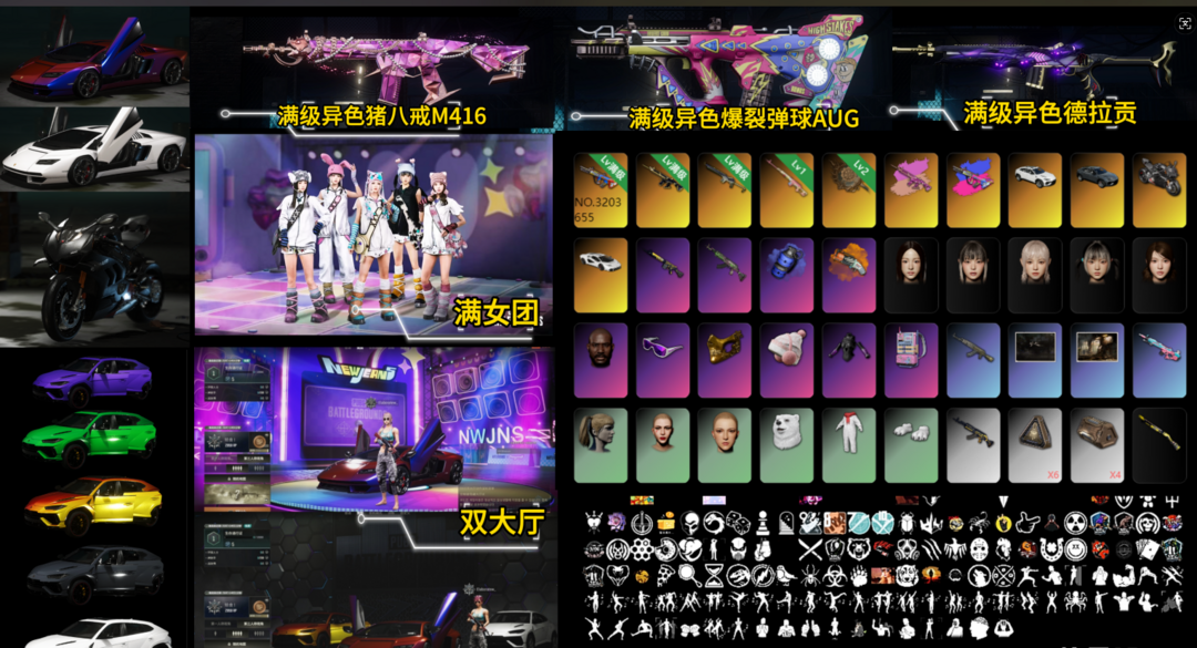【4满级6神器】布加迪/满NewJeans女团/满兰博/满级异色爆裂AUG/满级异色八戒M4/满级沙