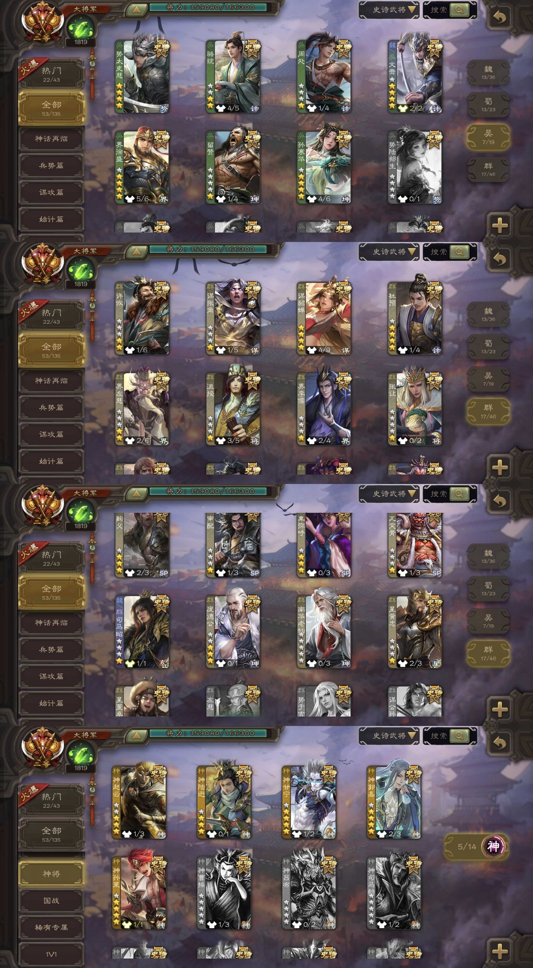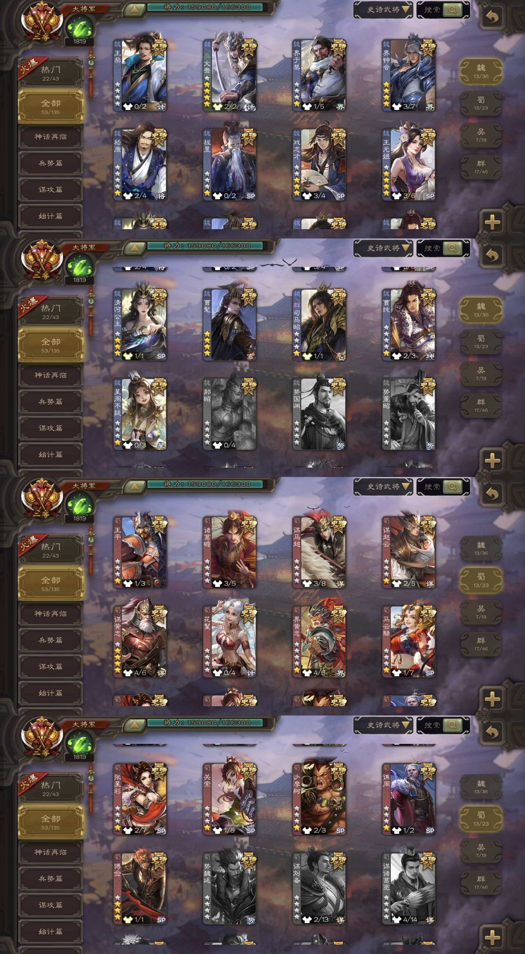 有豆有卡!势太史慈曹髦/四至尊回廊神郭嘉文鸯杜预钟会/典藏谋貂蝉奇门孙寒华回廊谋黄忠神孙策神甘宁