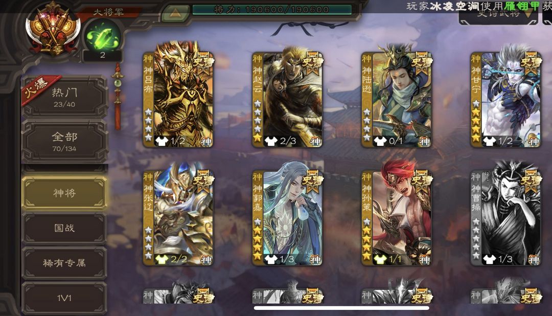 官方一等大将军!火龙果势魏延 动态势陆郁生 动态清河公主 势太史慈 曹髦 动态司马昭 动态回廊刘焉 全皮回廊文鸯 动态神郭嘉 动态神甘宁 动态神孙策 杜预 杨彪 动界左慈 动态谋貂蝉 冠绝天下神吕布 动态界徐盛 腾格尔留赞 全皮界李儒 南华老仙 星董卓等70史诗一等大将军